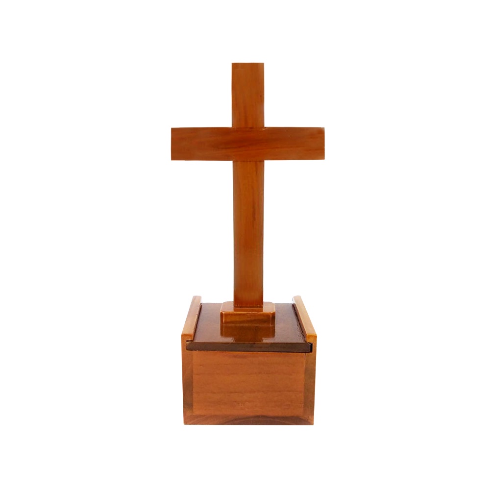 Name: Salib Duduk Kayu Kotak Tempat Benda Rohani 17 Cm Polos Tanpa Corpus