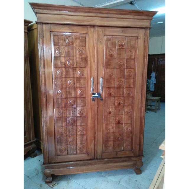 Ready Stoksiap kirimlemari pakaian kayu jati aslimodel pintu swingbahan kayu jati asli, bukan serbuk atau kayu lapisfinishing polytureukuran PxLxT : 120x57x200cmbisa custombisa kamar settowner langsungbengkel lemari langsung NB : Free Ongkir untuk wilayah DKI Jakarta(Bodetabek) + Ongkos kirim 150rbdan maaf saya hanya bisa melayani pengiriman untuk wilayah Jabodetabek dan sekitarnya saja.terima k