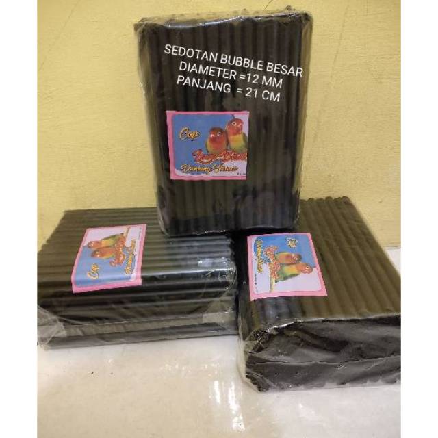 Harga diatas adalah harga per pack (berat +/- 250gr)Berat kena volume/dimensi Sedotan Bubble Besar HitamDiameter : 1,2 cm / 12 mmPanjang : 21 cm Isi : +/- 128 pcs