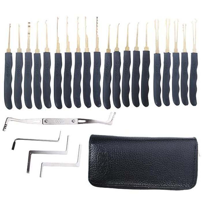 Alat Pembuka Gembok Pintu Kunci Lemari Dry Cabinet Door Alat Pembuka Gembok Pintu Kunci Lemari Dry Cabinet Door =============================Overview of Goso Set Alat Pembuka Gembok PintuAnda mungkin pernah kehilangan kunci dan kamar kos Anda tergembok dari luar? dengan alat lock pick dari Goso ini Anda dapat menjadi macgyver versi sendiri dan membuka gembok atau kunci pintu tanpa merusaknya.FEATURESOpen Lock Door EasilyAnda dapat membuka pintu rumah atau gembok dengan kombinasi set dari Goso lock pick ini, sangat cocok disituasi genting.24 Set KeySet paket Hogo Lock pick ini adalah 24 set alat yang dapat Anda gunakan sebagai pembuka pintu atau gembok rumah Anda.Key Lock BagHadir dengan paket tas untuk menyimpan paket kunci pembuka gembok ini, sangat praktis dan mudah dibawa kemanapun Anda pergi, berlatih menjadi profesional dapat digunakan dengan alat ini. Tidak dianjurkan menyalahgunakan alat pembuka pintu ini.PACKAGE CONTENTBarang-Barang yang Anda dapatkan dari dalam kotak produk:20 x Goso Single-hook Lock Pick4 x Tension Wrench1 x Leather cover case ###Mohon Tanyakan stok sebelum order untuk meminimalisir batal order dikarenakan stok produk dalam keadaan kosong. Thankss### Alat Pembuka Gembok Pintu Kunci Lemari Dry Cabinet Door Silahkan diorder