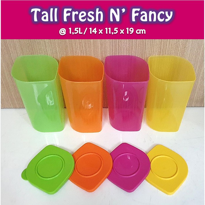 Tall Fresh N’ Fancy (1 Pcs) Toples TupwrKegunaan : Wadah yang tidak hanya sekedar untuk menyimpan makanan melainkan juga menjaga kualitas camilanUkuran : @ 1.5L / 14 x 11.5 x 19 cm Bagi Anda yang suka ngemil, Anda tentunya harus menyediakan camilan sehat untuk kudapan saat santai. Untuk menunjang kebutuhan penyimpanan agar camilan tetap renyah dan terjaga kualitasnya. Tupperware mempersembahkan Tall Fresh N’ Fancy (1). Wadah berwarna ceria yang sangat pas untuk membawa aneka camilan favorit Anda.Berikut ini adalah keistimewaan lain dari Tall Fresh n Fancy with Gift :•Dilengkapi seal ketat udara dengan tab yang memudahkan Anda untuk membukanya.•Basenya memiliki corak menarik yang elegan dan modern.•Memiliki fitur Stackable sehingga dapat disusun menumpuk ke atas dan menghemat ruang saat disimpan.•Tall Fresh N’ Fancy (1) memiliki 3 varian warna yang cantik yaitu hijau, , pink dan Biru yang akan menambah keceriaan Anda.NB : MOHON TANYAKAN KETERSEDIAAN BARANG TERLEBIH DAH
