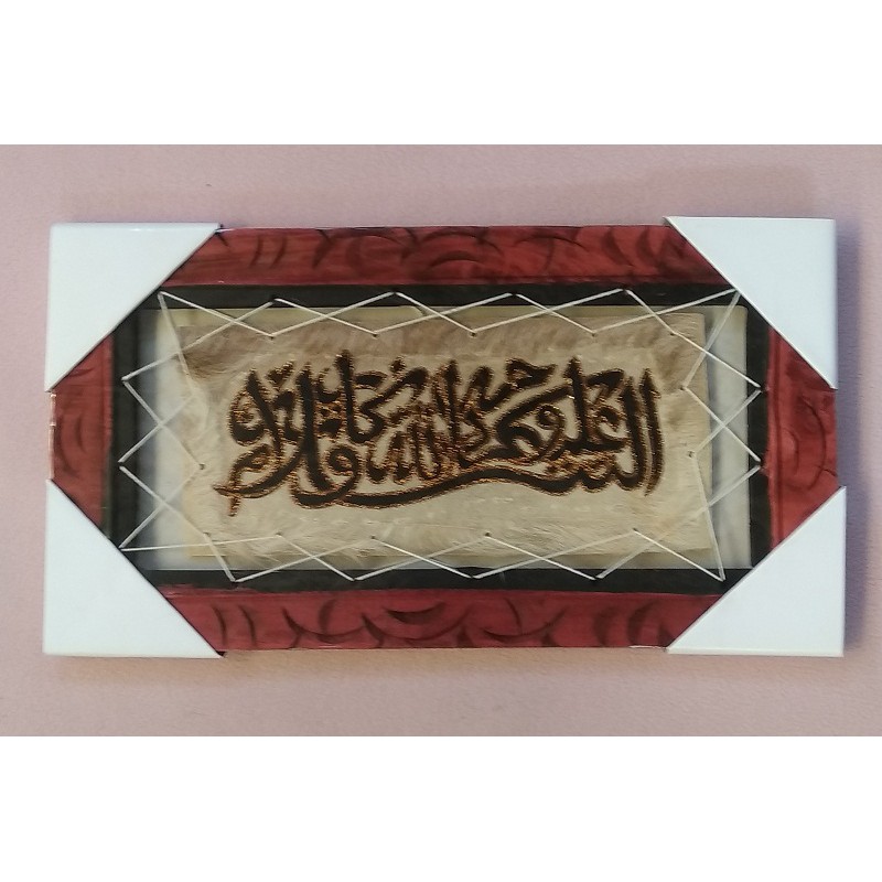 BismillahKami menjual kaligrafi kulit kambing dengan diskripsi produk sebagai berikut:Nama kaligrafi : Kaligrafi AssalamualaikumUkuran : 20cm X 40cmBahan : Kulit kambingBingkai : Kayu mahoni ukir cat vernis merah, dilapisi plastik bening tebalBerat : 500