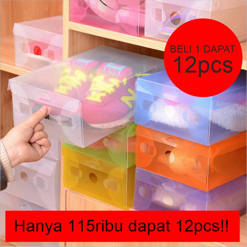Kotak penyimpanan sepatu untuk menyimpan sepatu dan sendal andaMembuatnya makin terlindungi dari debu dan kotoranDari bahan plastik candy yang tebal dengan berbagai warna yang cantikFungsi kotak sepatu transparan sbb:- Merapikan lemari sepatu Anda.- memudahkan memilih sepatu yang ingin Anda pakai.- Dapat dilipat kembali jika tidak terpakai, sehingga menghemat tempat.- Menghindari sepatu dari debu dan kotoran, serta lubang ventilasi agar sepatu tidak lembab.Spesifikasi:Bahan : PPModel : regular dengan bukaan atas.HARGA TERTERA UNTUK 1 LUSIN READY STOK SILAHKAN DIORDERUntuk pemilihan warna mohon di cantumkan di catatan,Jika warna yang di minta habis, akan kami konfirmasi dahuluPengiriman akan kami proses pada hari senin-sabtuTransaksi sebelum jam 3 sore akan kami proses di hari yang samaBerikan Respon anda dan Bintang 5 apabila anda puas dengan pelayanan kamiSertakan video unboxing saat paket baru datangJika komplain tanpa video itu, maka akan kami tolakSelamat Belanj