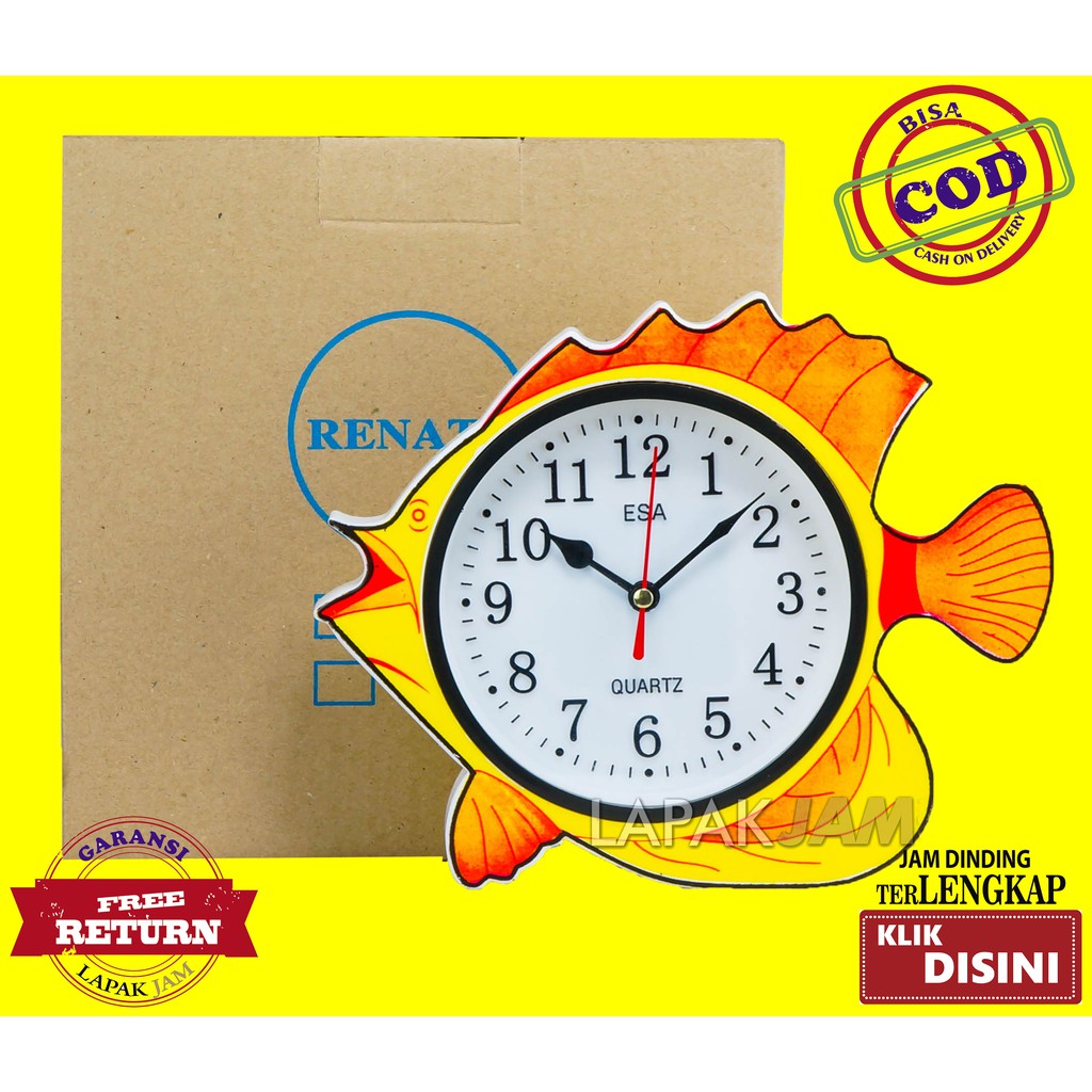 Jam Dinding ESA 433spesifikasi :Merk : ESASeri : 433Dimensi Luar : 23 x 18 cm Dimensi Dalam : 12,5 cmBentuk : IkanBahan : Plastik Warna Casing : Kuning Warna Dalam : PutihFitur : -Mesin Detak Movement-Awet & Tahan Lama-Plastik ABS & Kaca Mineral -Cocok untuk di rumah dan di kantor-Barang Laku nih bro dan dijamin kualitasnya-Garansi Toko 2 hari setelah penerimaan. Kami akan gantikan yang baru(dengan model yang sama) jika ada ada kerusakan selama perjalanan kurir. Baca catatan ketentuan pembelian di lapakjamshop.-Harga dijamin termurah karena kami adalah distributor asli dan memiliki jaringan toko jam sebanyak 8 cabang di jawa barat. -Dengan Gudang asli Sehingga pengecekan barang dilakukan 2 kali sebelum dikirimkan kepada anda. Pertama oleh orang gudang kami dan kedua oleh tim online kami dan dijamin barang anda dalam keadaan baru dan berjalan dengan baik sebelum dikirim kepada anda. Jikalau ada kerusakan selama perjalanan kurir anda tinggal retur kepada kami. Kami tidak takut dengan retur brg rusak(dengan kewajaran) gan. Aman banget belanja jam dinding di sini gan tidak usah khawatir apa2 gann:DDAnda bisa berbelanja Online dengan tenang di lapakjamshop karena kerusakan di perjalanan kurir merupakan tanggung jawab kami. Selamat berbelanja di lapakjamshop ga