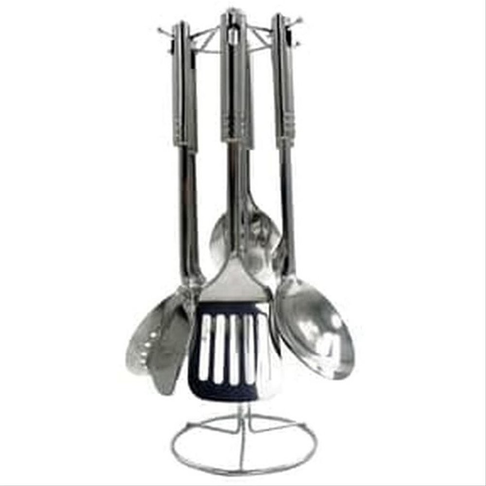 KITCHEN TOOL SET - SPATULA SET ISI 7 PC termasuk HANGERSpecifications :- SPATULA Stainless SENDOK DAPUR MEWAH6 Pcs Utensils Plus HolderSkimmer, Porridge Spoon, meat Fork, Spatula, Flat Spatula, Rice Spoon + HolderBahan Stainless Steel TerbaikBahan stainless steel atau dikenal dengan baja tahan karat adalah bahan yang termasuk kuat dan tahan panas. Keunggulan lain bahan ini adalah anti karatnya yang tahan lama. Keseluruhan set spatula ini hadir dalam bahan stainless steel berkualitas mulai dari ujung gagang hingga bagian penyendo