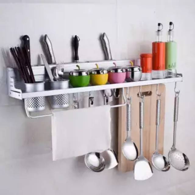 Rak Dinding Tempel Minimalis Rak Gantung Perlengkapan Dapur Rak Dapur Dekorasi RumahBarang Unik Murah Rak Dinding Dapur Aluminium - Rak Pisau - Rak Bumbu - Rak Sendok MultifungsiRak multifungsi dinding dapur aluminium dengan kualitas high-end , nyaman , tahan lama.Fitur terbesar adalah penyimpanan dan kuat , tidak lagi perlu khawatir tentang tidak ada tempat untuk meletakkan peralatan dan khawatir tentang karat .size 57. 4 x12,5
