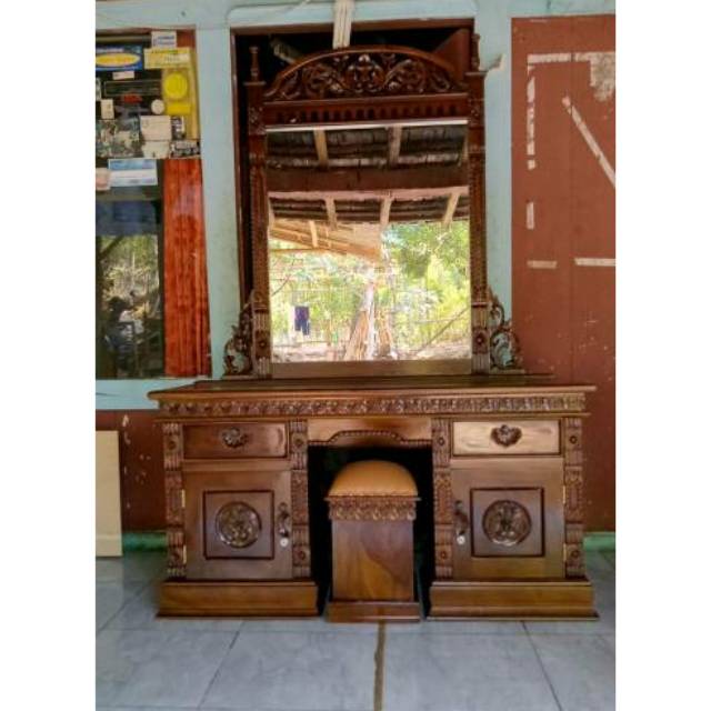 Best Seller Perlengkapan di Kabupaten Ngawi Gratis Ongkir Meja Rias Rahwono Ukir Jati Furniture Mebel Azril Berkah Mebel dari Tidak Ada Merek Kab. Jepara