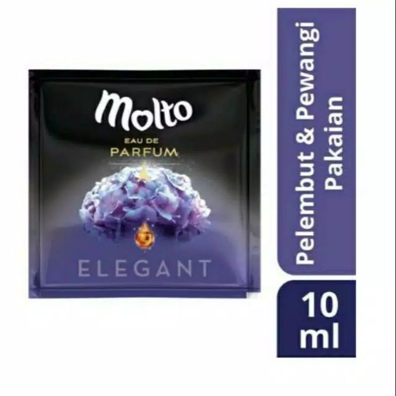 Molto Eau De Parfun Elegant Keharuman parfum Perancis dari bunga-bunga mawar, melati dan muguet untuk pancaran keanggunan yang tahan lama.keunggulan Molto EDP lainnya:- Dengan keharuman parfum baru yang tahan sepanjang hari- Hanya cukup 1x bilas- Konsentrat, cukup setengah tutup botolisi