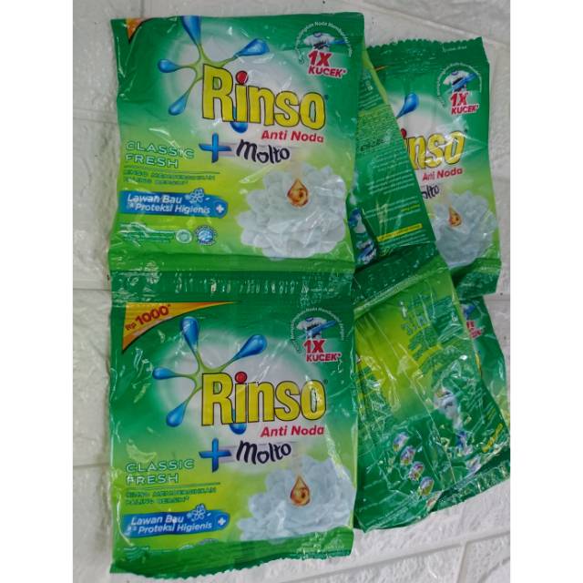 Rinso Anti Noda + molto. Lawan Bau. Classic Fresh= 1 renteng isi 6 sachetPembelian dapat Eceran 1 renteng atauPembelian 5 renteng = harga grosir. Pembelian ecer dan grosir#sabun #rinso #detergen #sembako #grosirsembako #grosirsembako