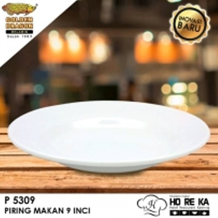 Piring makan 9 inci putih - Horeka Series. Ceramic Style dengan kilau dan tebal menyerupai piring keramik. Diproduksi dengan bahan baku melamine standard Food Grade. Bersertifikat SNI 7322 : 2008. Aman untuk menyajikan makanan panas sampai 120 derajat celcius dan dingin sampai -15 derajat celcius. Cocok digunakan di rumah tangga maupun untuk usaha kuliner yang ingin tampilan premium dengan harga terjangkau. Tidak untuk dimasukkan ke dalam microwave dan tidak untuk memanaskan makanan dengan komporDeskripsi Produk:Merk : Golden Dragon MelamineWarna : Putih Bahan : Melamine dengan standard Food Grade , ISO dan SNI 7322 : 2008Buatan IndonesiaSpesifikasi: Ukuran : 9 inciPanjang : 23,5 cmLebar : 23,5 cmTinggi : 4.2 cmKelebihan Produk ini adalah- Tahan Gores- Lebih mengkilap dari melamine biasa- Lebih tebal dari melamine biasa dan bobotnya mirip dengan piring / mangkok keramik- Tahan Panas sampai 120 derajat dan dingin sampai -20 derajat ce